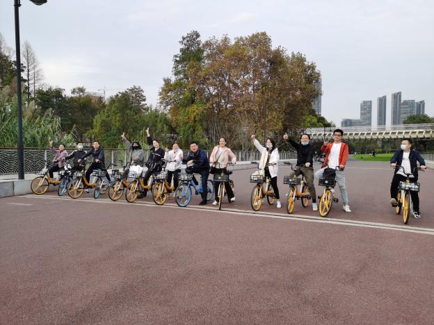 下午17時30分,結(jié)束1個半小時騎行體驗(yàn)的伙伴們聚集在終點(diǎn)處集體合影留念,當(dāng)天的活動落下圓滿帷幕。