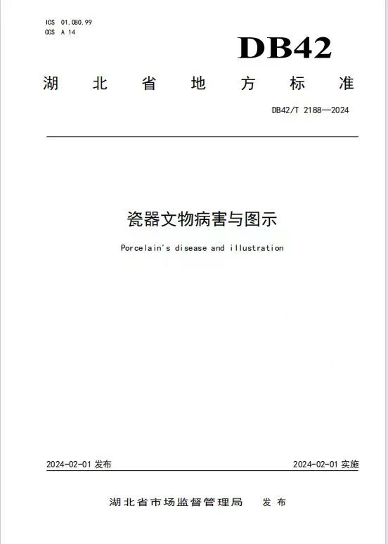 湖北首例可移動文物保護地方標(biāo)準(zhǔn)發(fā)布實施。近日,由湖北省文化和旅游廳指導(dǎo),湖北省博物館主編,湖北省標(biāo)準(zhǔn)化與質(zhì)量研究院、湖北省古建筑保護中心、武漢大學(xué)歷史學(xué)院參編的湖北省地方標(biāo)準(zhǔn)《瓷器文物病害與圖示》(標(biāo)準(zhǔn)號:DB42/T2188-2024)作為湖北省地方性標(biāo)準(zhǔn)由湖北省市場監(jiān)督管理局正式發(fā)布并實施。這是國內(nèi)第一個瓷器文物病害圖示標(biāo)準(zhǔn),也是湖北首例可移動文物保護行業(yè)地方性標(biāo)準(zhǔn)。
