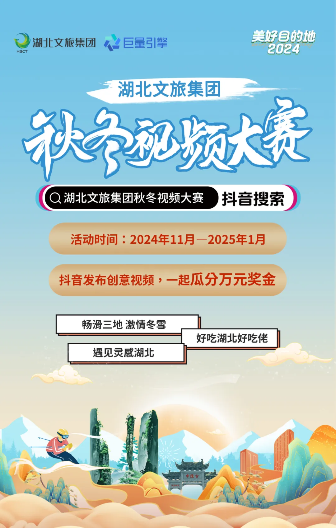湖北文旅集團正式啟動秋冬視頻大賽,邀您共賞荊楚之美。近日,湖北文旅集團啟動秋冬視頻大賽。此次活動以“遇見靈感湖北 好吃湖北好吃佬”、“暢滑三地 激情冬雪”以及“景區(qū)代言人”為主題,鼓勵廣大網(wǎng)友通過鏡頭記錄湖北的自然風光、美食文化及冬季運動的樂趣?;顒幼?024年11月開始,將持續(xù)至2025年1月底。參賽者需在其個人抖音賬號上發(fā)布符合任一主題要求的原創(chuàng)視頻,并使用官方指定話題標簽“#湖北文旅集團秋冬視頻大賽”,同時添加參與拍攝內(nèi)容所涉及的湖北文旅集團旗下任意景區(qū)的位置信息。此次活動不僅是對湖北豐富旅游資源的全面展示,也為廣大攝影愛好者提供了展現(xiàn)才華與創(chuàng)意的舞臺。