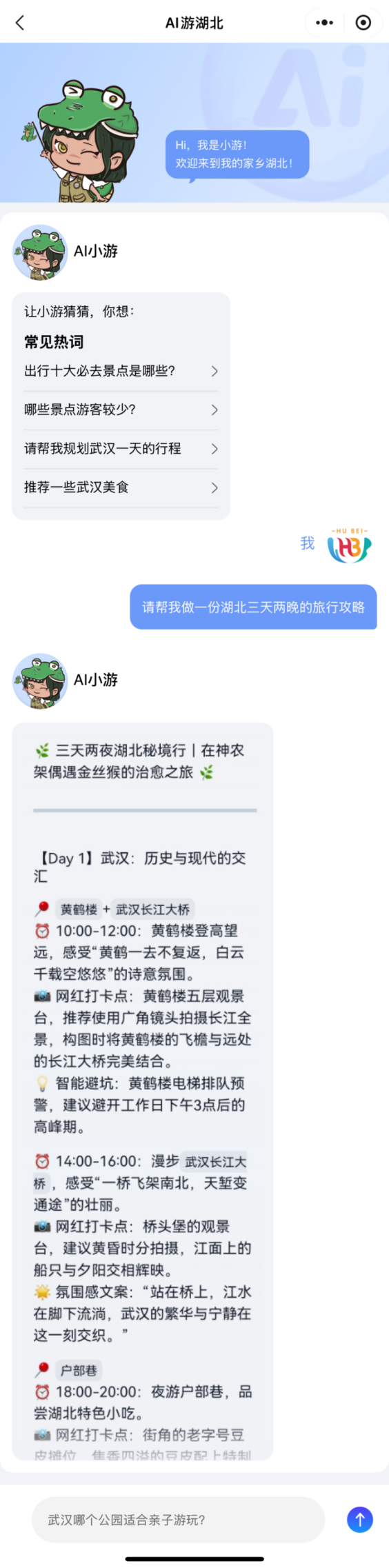 接入DeepSeek,湖北文旅集團(tuán)實(shí)現(xiàn)人工智能技術(shù)深度應(yīng)用重大突破。在湖北文旅集團(tuán)數(shù)智化戰(zhàn)略的驅(qū)動(dòng)下,數(shù)旅集團(tuán)深入推進(jìn)人工智能技術(shù)深度應(yīng)用項(xiàng)目。近日,“游湖北”平臺(tái)上線“AI游湖北”板塊,無論是行程規(guī)劃、景點(diǎn)介紹,還是實(shí)時(shí)天氣查詢、景區(qū)客流預(yù)警,都能輕松實(shí)現(xiàn)。自2024年第四季度項(xiàng)目啟動(dòng)以來,技術(shù)團(tuán)隊(duì)巧妙借助國(guó)產(chǎn)大模型DeepSeek的強(qiáng)大效能,一舉斬獲兩項(xiàng)重大突破:搭建企業(yè)級(jí)知識(shí)庫系統(tǒng)、完成智能旅游行程助手設(shè)計(jì),為文旅行業(yè)的智能化變革注入了澎湃新動(dòng)能。未來,數(shù)旅集團(tuán)將繼續(xù)深化人工智能技術(shù)的應(yīng)用,探索更多創(chuàng)新場(chǎng)景,推動(dòng)文旅行業(yè)的數(shù)字化轉(zhuǎn)型,為用戶創(chuàng)造更優(yōu)質(zhì)的智能化服務(wù)體驗(yàn)。