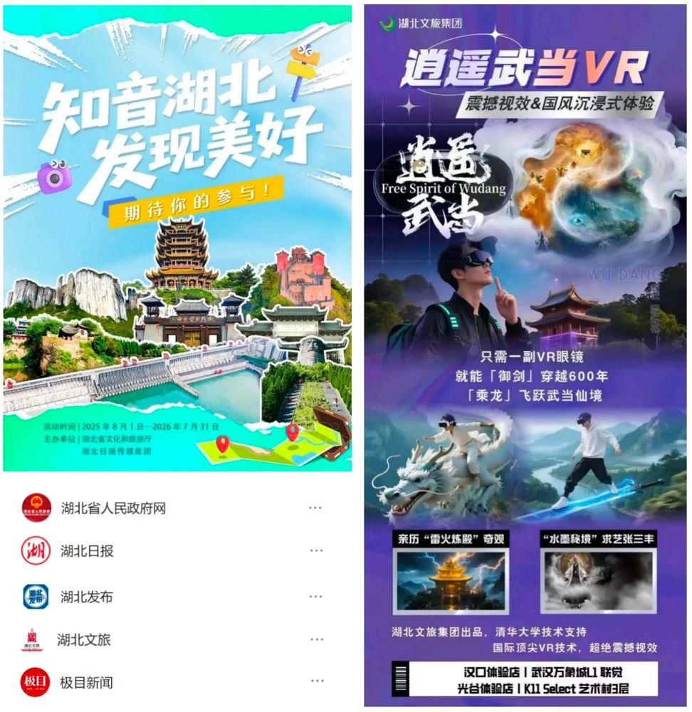 “知音湖北”攜手“逍遙武當”共繪數字荊楚新畫卷。近期,“知音湖北 發(fā)現(xiàn)美好”全媒體征集活動正式啟動。數旅集團“逍遙武當”VR沉浸體驗作為官方指定禮品,將武當山72峰、36巖、24澗、九宮八觀以LBE大空間技術高仿真復刻,動捕、光影、音效三維一體,讓游客在城市商圈即可沉浸式領略武當神韻。項目6月亮相武漢萬象城、光谷K11,即登頂大眾點評、美團、抖音區(qū)域VR人氣榜,下一步將以授權模式走向全國,持續(xù)講好湖北故事,傳播荊楚文化。