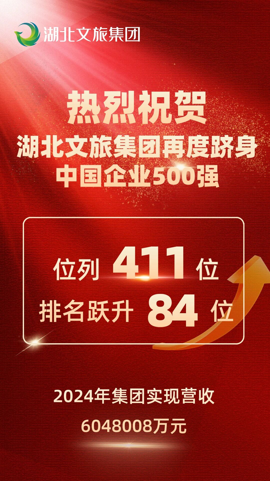 湖北文旅集團(tuán)再入圍中國企業(yè)500強(qiáng),排名躍升84個位次。9月15日,中國企業(yè)聯(lián)合會、中國企業(yè)家協(xié)會連續(xù)第24次向社會發(fā)布了“中國企業(yè)500強(qiáng)” (以下簡稱“企業(yè)500強(qiáng)”)榜單。湖北文旅集團(tuán)連續(xù)第二年入圍,排名升至411位,比去年躍升了84個位次。近年來,集團(tuán)年營收、經(jīng)營性利潤均保持20%以上高位增長,特別是2024年集團(tuán)投資、營收、接待游客量三個核心指標(biāo)增長100%以上,當(dāng)年接待游客量突破3100萬人次,總資產(chǎn)達(dá)1000億元。集團(tuán)連續(xù)七年獲評全國旅游集團(tuán)20強(qiáng),連續(xù)兩年躋身“中國企業(yè)500強(qiáng)”。